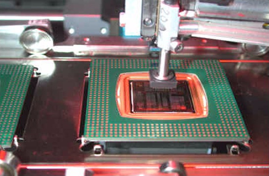 芯片與封裝基板的粘接,往往是兩種不同性質(zhì)的材料,材料表面通常呈現(xiàn)為疏水性和惰性特征,其表面粘接性能較差,粘接過程中界面容易產(chǎn)生空隙,給密封封裝后的芯片帶來很大的隱患,對(duì)芯片與封裝基板的表面進(jìn)行等離子處理能有效增加其表面活性,極大的改善粘接環(huán)氧樹脂在其表面的流動(dòng)性,提高芯片和封裝基板的粘結(jié)浸潤(rùn)性,減少芯片與基板的分層,改善熱傳導(dǎo)能力,提高1 C 封裝的可靠性、穩(wěn)定性,增加產(chǎn)品的壽命。